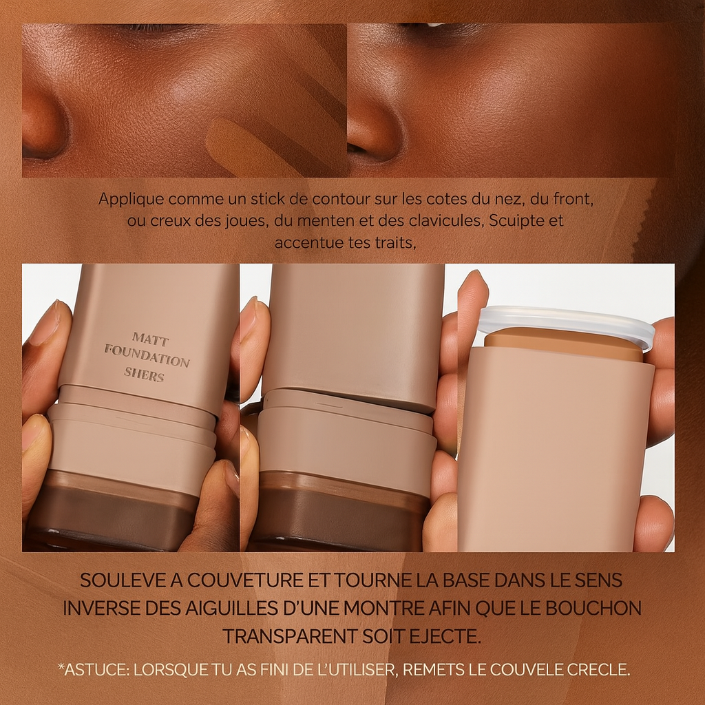 Découvrez notre stick fond de teint crémeux qui s’applique en un seul geste. Il unifie, sculpte et illumine pour un fini mat, naturel et longue tenue. Compact et pratique, il est ton allié beauté à emporter partout 👜.